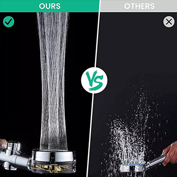 ULTRA COMFORTABLE EXPERIENCE WITH HIGH WATER STREAM PRESSURE - turbocharged shower filter combined with revolutionary micro nozzle technology makes the outlet holes smaller and denser, increasing the speed of the water flow, thereby increasing the pressure washer by 200%